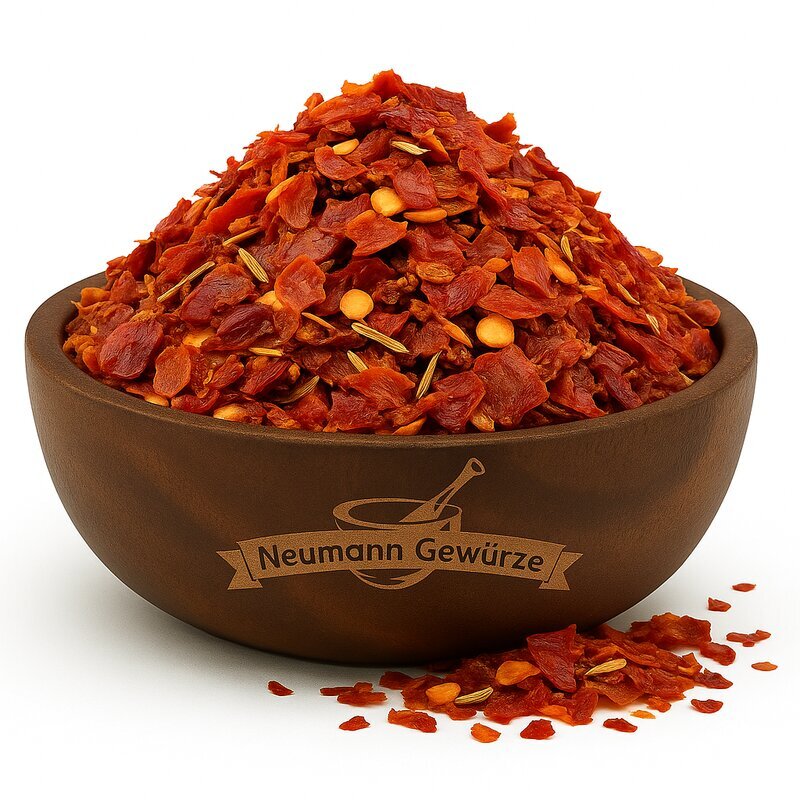 Tomatenflocken, Chili, Paprikaflocken, Meersalz, Kreuzkümmel, Knoblauch